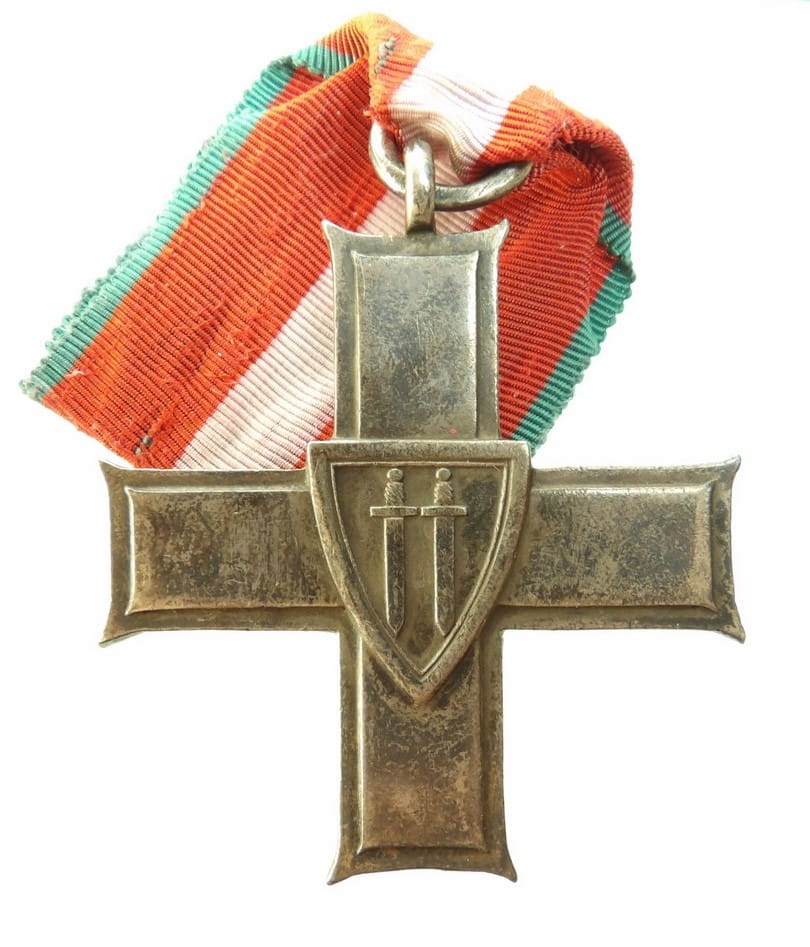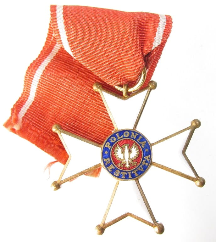 Awers: Krzyż pokryty białą emalią. W centralne części orzeł na czerwonym tle oraz dewiza POLONIA