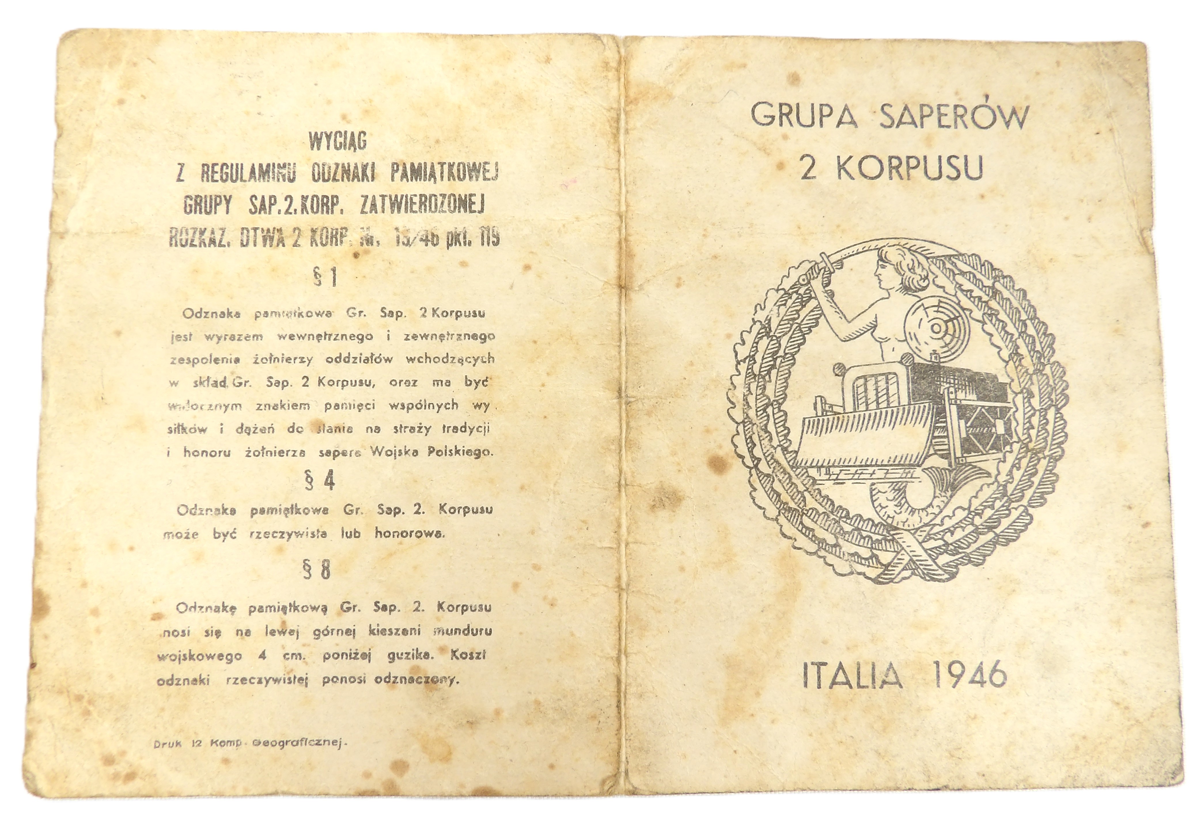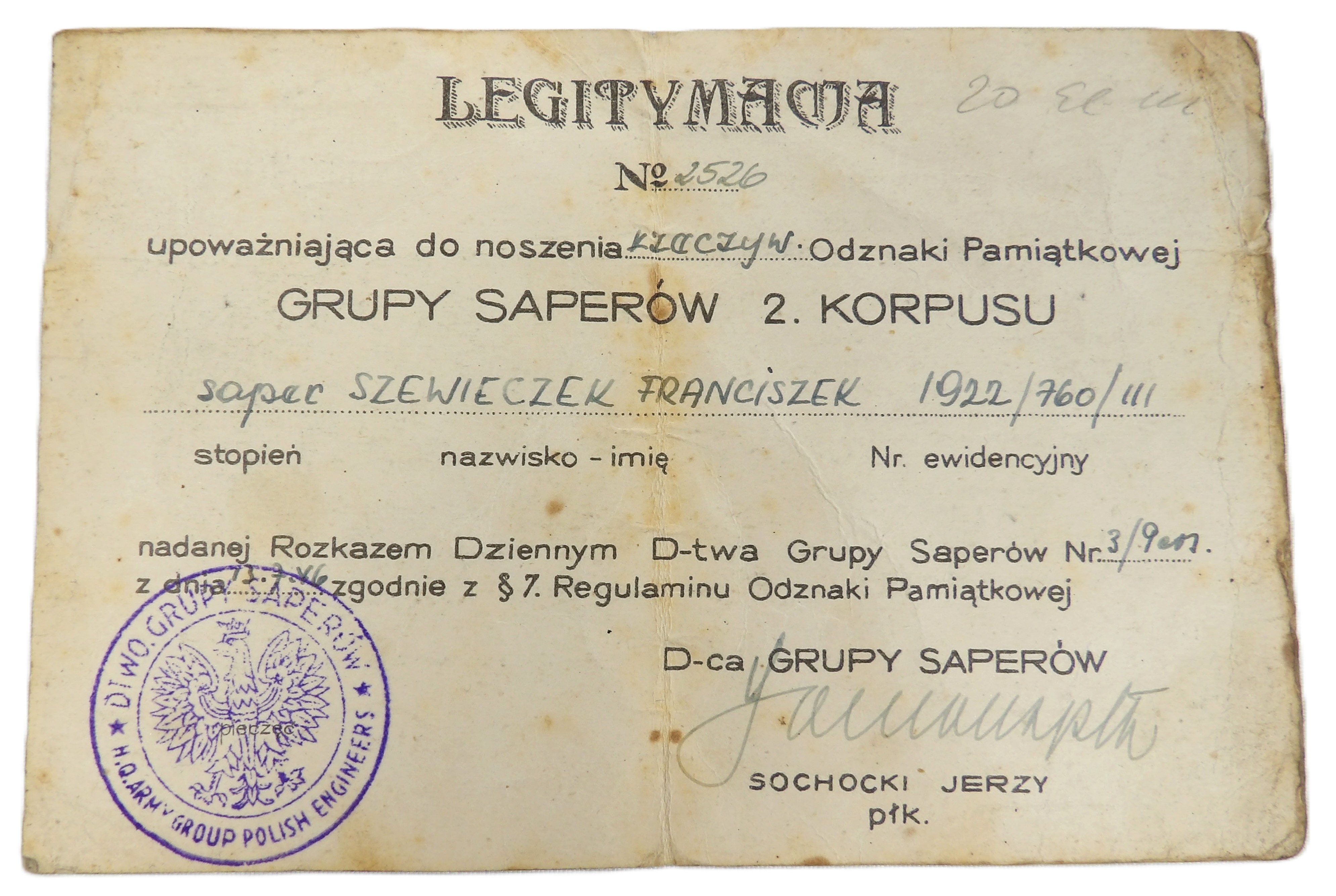 GRUPA SAPERÓW 2 KORPUSU. - LEGITYMACJA DO ODZNAKI