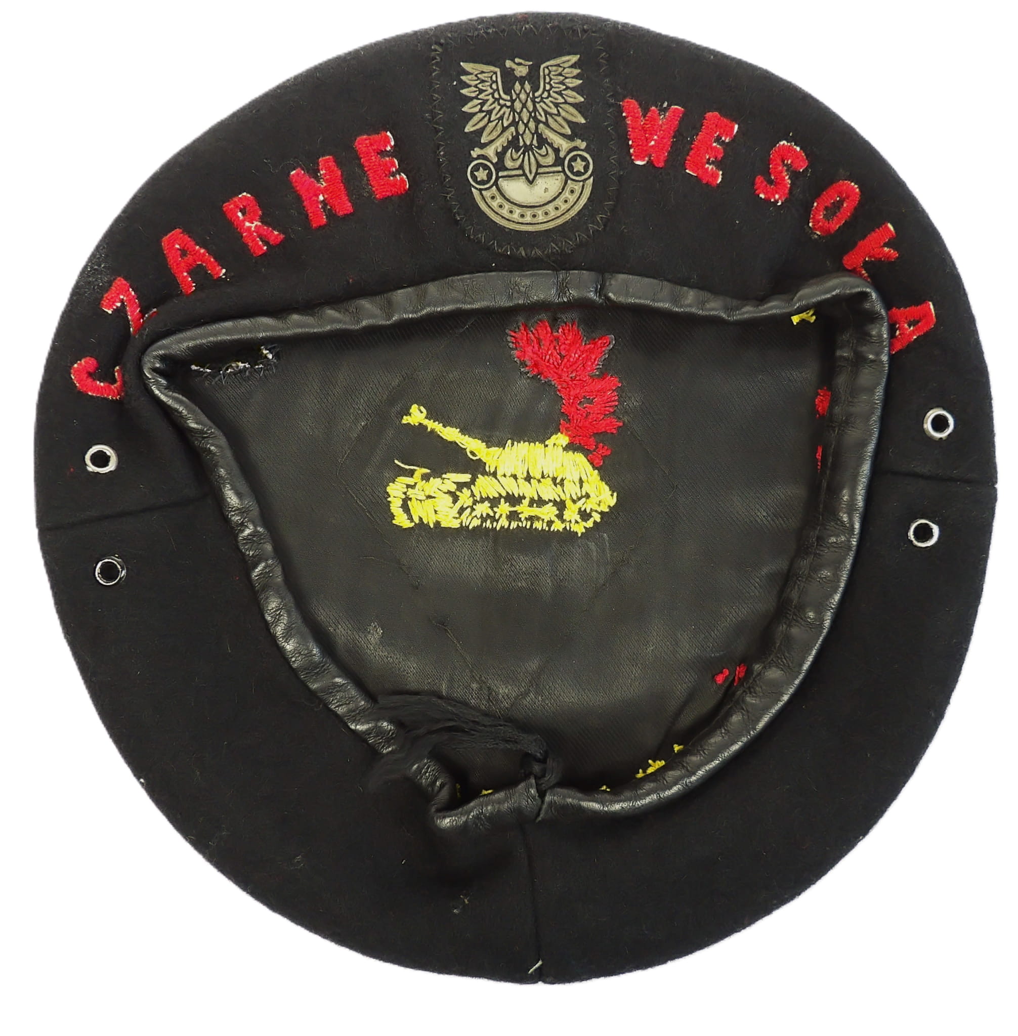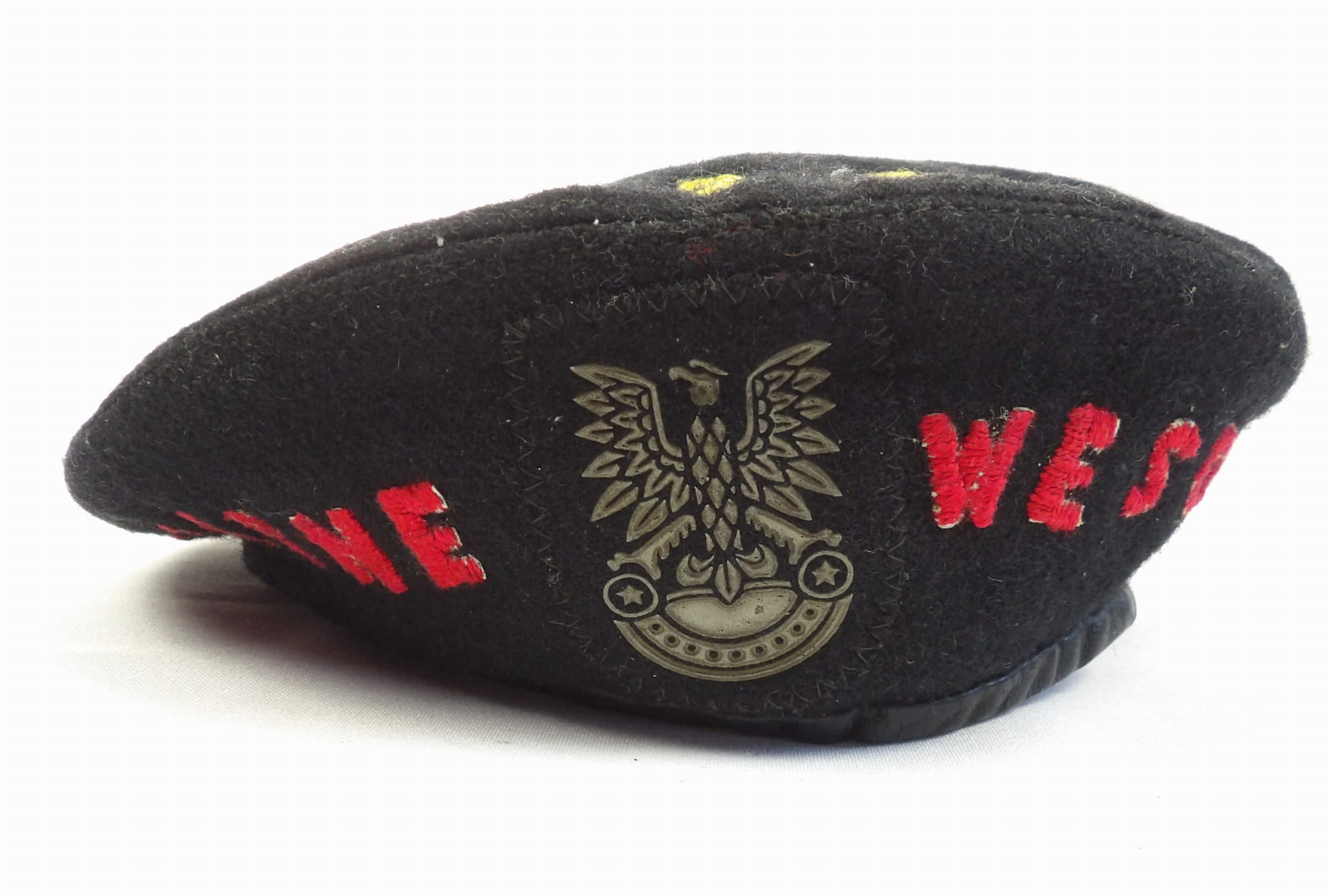 Oryginalnie obszyty beret rezerwisty wojsk pancernych. Widoczne ślady noszenia.