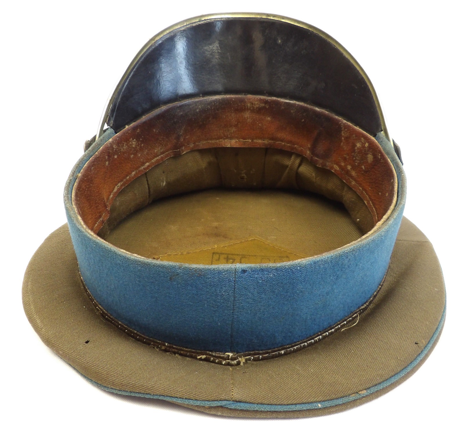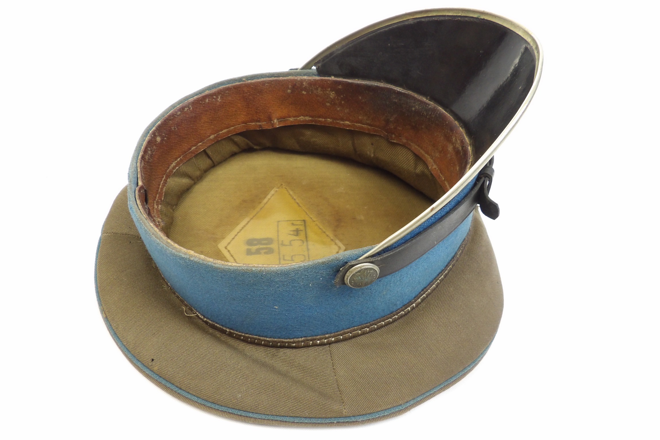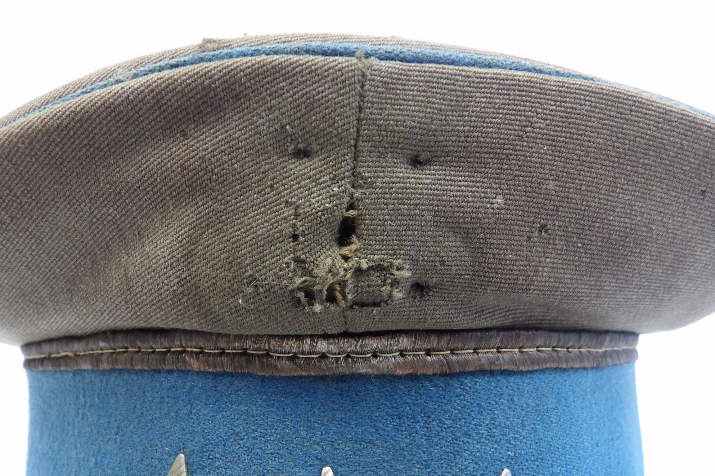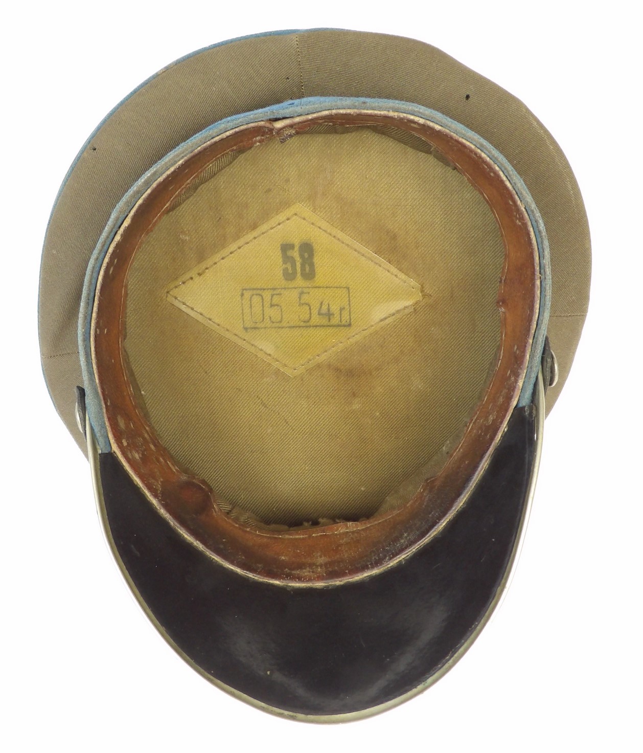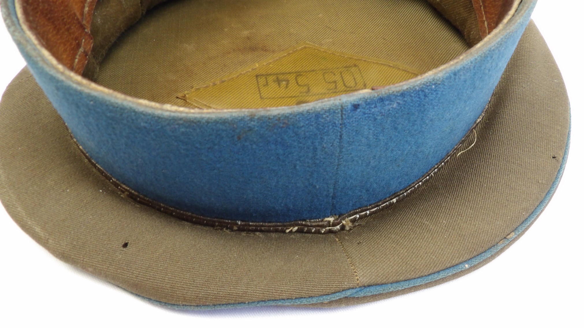 Rzadko notowana czapka z chabrowym otokiem, przeznaczona dla młodszego oficera wojsk lotniczych. Egzemplarz wykonany w 1954 roku. Widoczne punktowe ubytki materiału, zgięcia pierwotnych płaszczyzn, zabrudzenia oraz ślady użytkowania. Obręcz usztywniająca została wymieniona. Na otoku widoczne są trzy gwiazdki. Oryginalne egzemplarze czapek lotniczych z tego okresu są obecnie notowane niezwykle rzadko.