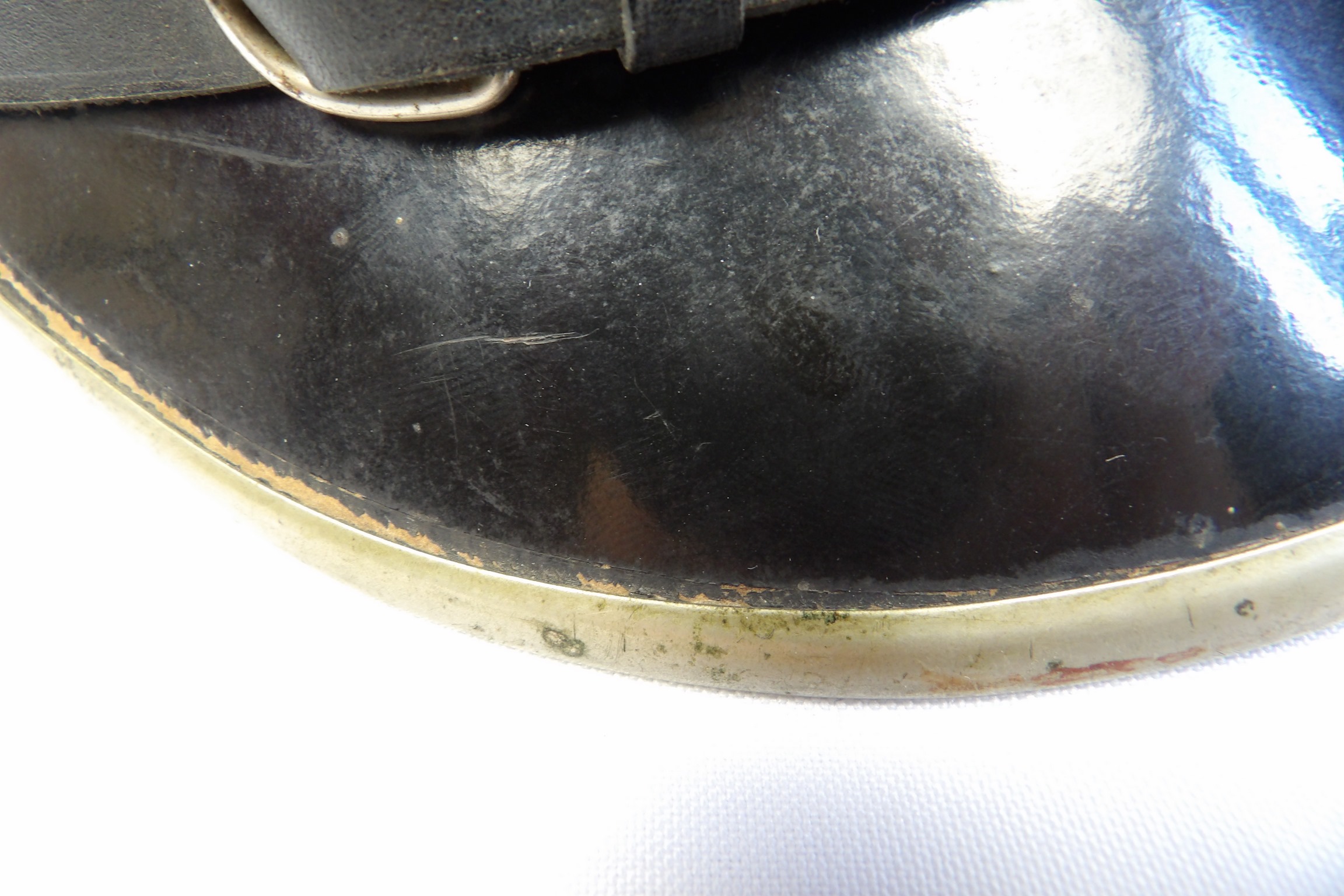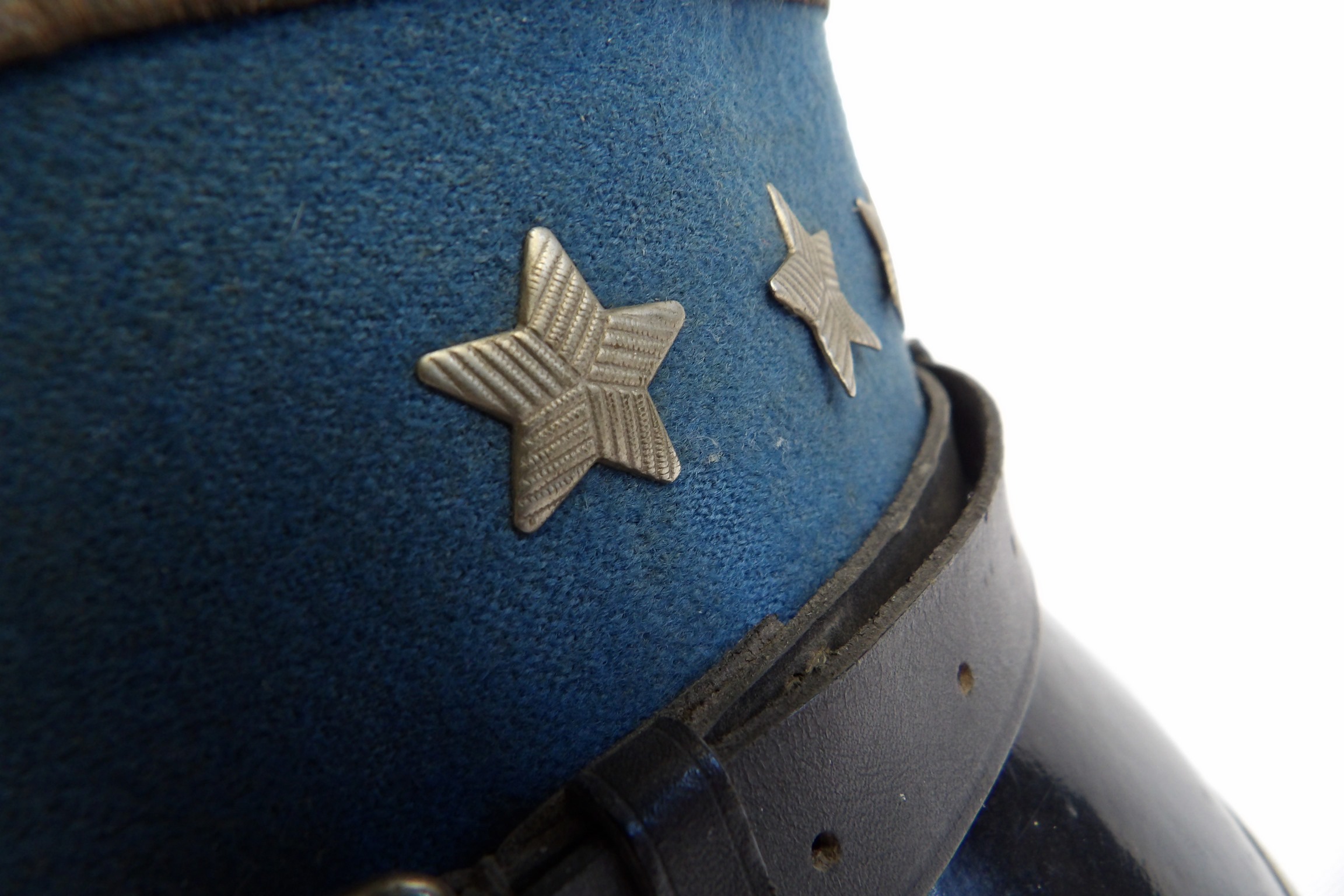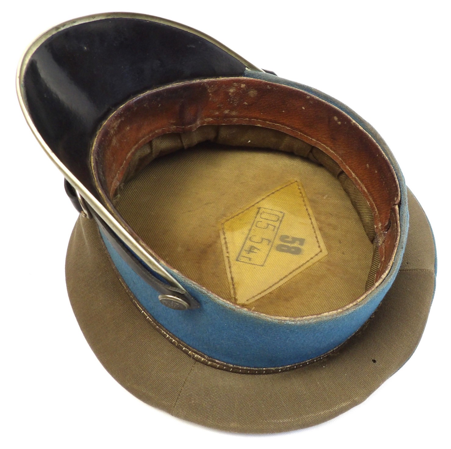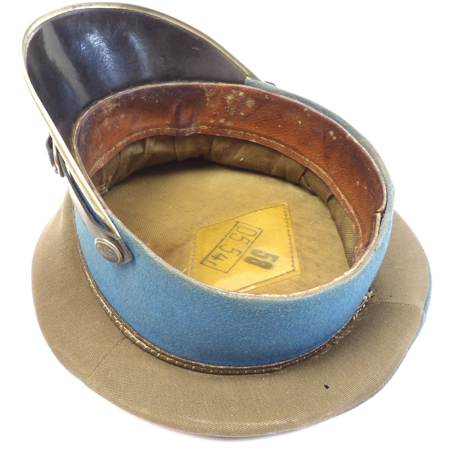 Rzadko notowana czapka z chabrowym otokiem, przeznaczona dla młodszego oficera wojsk lotniczych. Egzemplarz wykonany w 1954 roku. Widoczne punktowe ubytki materiału, zgięcia pierwotnych płaszczyzn, zabrudzenia oraz ślady użytkowania. Obręcz usztywniająca została wymieniona. Na otoku widoczne są trzy gwiazdki. Oryginalne egzemplarze czapek lotniczych z tego okresu są obecnie notowane niezwykle rzadko.