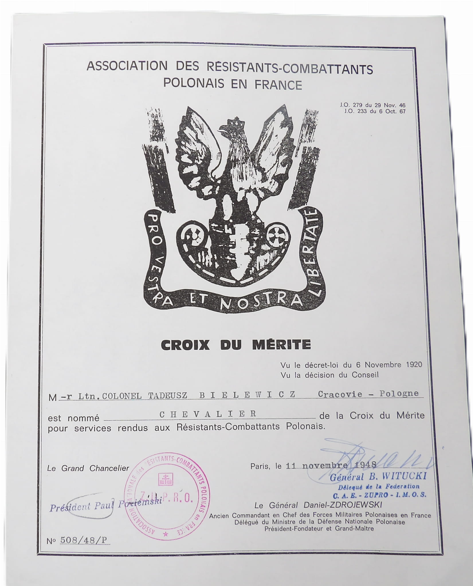 Dyplom Croix Du MERITE.
