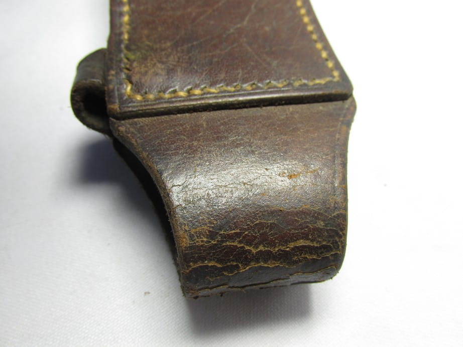 Naturalna barwa skóry. Spękania oraz ubytki szwów. Jeden z troczków przerwany.